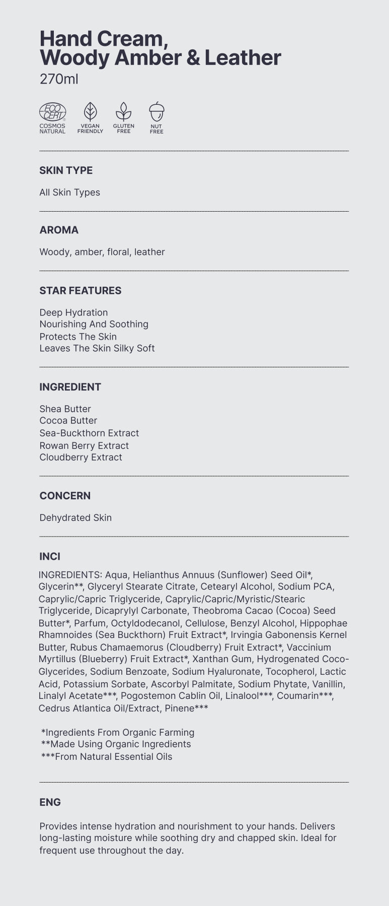 Natuurlijk. Zijdezachte Handcrème, Houtachtig Amber & Leer